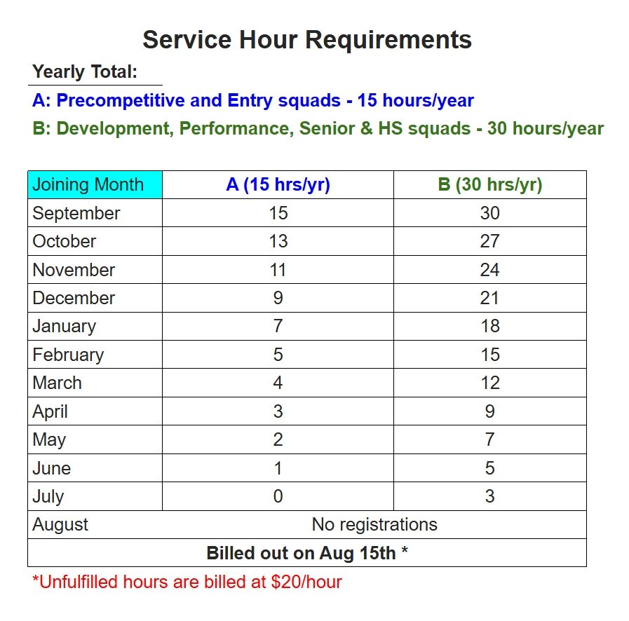 Throughout the year we provide volunteer opportunities such as helping at meets, officiating, becoming a board or committee member, donating items/food and much more! Service hours are applied to your account within days of when you volunteered. You can view your total hours worked through your personal team account.